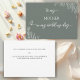 Honorer la femme la plus importante de votre vie avec cette carte "À ma mère le jour de mon mariage" magnifiquement conçue, avec des fleurs de pré délicates et des tons doux et romantiques. Ce souvenir sincère est le moyen parfait d'express votre gratitude, votre amour et votre reconnaissance à votre mère à l'un des jours les plus significatifs de votre vie. L'avant présente un design floral et une typographie élégante, tandis que l'arrière offre de l'espace pour un message entièrement personnalisable, vous permettant de partager vos pensées personnelles, vos souvenirs, ou une note spéciale qu'elle chérira pour toujours. Idéal pour un cadeau de jour de mariage, pour un moment de préparation ou de conservation Un beau mélange de sentiment et de style, cette carte est un gage intemporel d’amour qu’elle n’oubliera jamais.