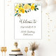 Soirée d'anniversaire moderne élégante aquarelle jaune rose floral 90e (ou tout âge) Poster de bienvenue. Facile à personnaliser et parfait pour tout âge.