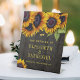 Panneau de bienvenue sur table mariage, rustique et personnalisé, avec de beaux bouquets de tournesols en or jaune avec feuillage vert naturel et deux petits coeurs dorés sur un arrière - plan en bois de grange brun foncé. +++++++++++++++++++ Facile à customiser avec les noms de mariée et de mariée, date et lieu. ++++++++++++++++++ Convient pour l'été ou l'automne jardin extérieur ou jardin cérémonies et réceptions mariages.