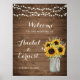 Chaîne de tournesol en bois rustique illumine l'Affiche de bienvenue Mariage. Sunflowers Mason Jar Affiche de bienvenue Mariage