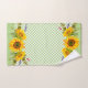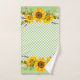 Ce design de campagne/ferme a de beaux bouquets de tournesol aquarelle sur un arrière - plan en damier vert pastel.