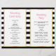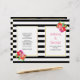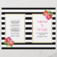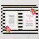 Des fleurs tropicales roses et violettes exceptionnelles et des rayures noires et blanches pliées cérémonie mariage et programme de fête. De jolies fleurs tropicales ornent cet élégant et moderne design mariage à fleurs. Votre texte est placé sur des cadres blancs avec des contours dorés. Choisissez le papier de valeur comme il se plie bien et le plier en deux manuellement.