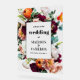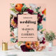 Une belle bannière mariage avec un design de célébration mariage personnalisable présente des roses frais, ranunculus, dahlias, snapdragons, et begonias en bordeaux, orange, blanc et rose, exposés contre un arrière - plan magenta. Le langage des fleurs, connu sous le nom de floriographie, attribue des significations différentes à différents types et couleurs de fleurs. Par exemple, les roses représentent l'amour ; les bégonias symbolisent l'harmonie ; les dahlias signifient l'engagement ; le ranunculus représente le charme ; et les snapdragons signifient la grâce.