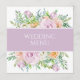 Fleurs d'été Floral Wedding Reception Menu conçu dans un bouquet aquarelle aux teintes douces violet, blanc, bleu et vert. Le texte avant comprend : Menu Mariage. Le texte inverse comprend : Votre apéritif, Entre et Dessert Manu Selections. Pour personnaliser, insérez simplement vos sélections de menu dans notre modèle facile, en remplaçant l'exemple de texte. N'oubliez pas de consulter la collection entière de papier à lettres Mariage Floral Fleurs d'été pour les cartes et accessoires correspondants.