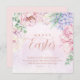Belle carte religieuse de Pâques joyeuse avec des fleurs douces et jolies aquarelles, arrière - plan rose clair et élégant texte en or faux rose. Parfait pour le printemps et Pâques. Customisez avec le verset de la bible, message de salutation et nom.