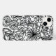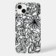 Le design présente des fleurs illustrées et des feuilles en noir et blanc.