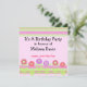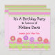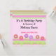 Une invitation à l'anniversaire amusante avec des bordures de rayures rose, verte et mauve. Fleurs dans les tons rose et mauve avec tiges vertes et feuilles. Un joli dessin d'anniversaire fantaisiste. Customisez avec toutes vos informations comme vous le souhaitez.