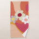 Design rétro coloré Abstrait avec fleurs fleuries et décoration des vagues jaunes, oranges et roses sur arrière - plan rose pastel