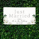 Fêtez le joyeux voyage du mariage avec notre élégant design "Just Married", orné de délicates fleurs blanches. Parfait pour ajouter une touche de fantaisie et de charme à la voiture d'escapade du couple, c'est une façon délicieuse d'annoncer leur nouveau statut dans le style.