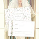 Elégant botanique rose roux fleurs sauvages avec texte vert mariage carte plat, avec les noms exquis de mariée et de mariée sur le dos.