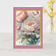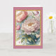 Cette conception de carte est une aquarelle semblable à un pastel de fleurs de pivoine avec une bordure de faux strass dorés et un fond rose. Il est suggéré pour une carte "Pensée pour toi", mais pourrait également être personnalisé en tant que carte d'anniversaire ou de vœux de rétablissement.