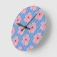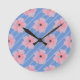 Fleurs Roses Et Bandes Horloge Mur