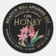 Le design central présente une jolie illustration florale rose. Les mots "pur" et "miel" sont imprimés dans un dégradé d'or métallique "ciselé". Personnalisez avec votre nom, adresse et description du miel (brut, embouteillé à la main, source unique, etc.). Incluez également votre poids net miel. Conversions de poids net miel : 8oz (227g), 12oz (340g), 16oz (454g), 32oz (907g), 5lb (2,27kg). Un arrière - plan noir avec cercle doré entoure le motif central.