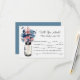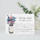 Carte de réponse RSVP assortie parfaite pour un mariage champêtre ou peut-être que vous aimez simplement les pots Mason ! Pot Mason suspendu à un crochet rempli de fleurs sauvages champêtres. Fond blanc avec le pot Mason suspendu et des fleurs sauvages dans des tons de bleu marine, bleu fumé et rose goyave. Si vous avez des questions sur ce design ou si vous souhaitez une modification de couleur, veuillez m'envoyer un e-mail à paula@labellarue.com. Vérifiez également les cartes de réponse RSVP, de réception et de placement des invités pour assortir !