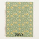 Fleurs jaunes pâles avec centre jaune foncé et doré sur un arrière - plan vert crée un beau planificateur que vous adorerez utiliser.