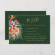 Carte RSVP mariage traditionnelle entièrement personnalisable avec une option de code QR au dos pour donner à vos invités plus d'options de réponse. Le design est réalisé avec un bouquet de fleurs tropicales colorées d'aquarelle rose, orange et vert.