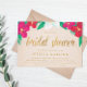 De belles fleurs tropicales roses, rouges et blanches s'associent avec du texte doré dans ces invitations tropicales à la douche nuptiale fleurie.