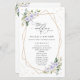 Ajoutez une touche personnelle à votre fête mariage avec ces objets de fête élégants et mémorables ! Le design présente des fleurs d'aquarelle violette et blanche, de la verdure, des confettis dorés et un cadre doré sur un arrière - plan blanc.