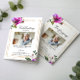Programme funéraire mettant en vedette sur le devant une photo du défunt, son nom, ses dates, le lieu du mémorial, la date de l'événement et l'élégant cadre doré. A l'intérieur se trouve une nécrologie et un ordre de service ; et au dos une autre photo, une note de remerciement et le deuxième lieu pour après les funérailles. Pour plus de personnalisation, cliquez sur le lien "customiser plus" et utilisez notre outil de conception pour modifier ce modèle. Si vous avez besoin d'aide ou d'articles correspondants, veuillez me contacter.