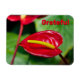 Aimant rouge Anthurium Peace Lily avec une citation gracieuse.