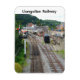 This magnet features the Llangollen Station on the Llangollen Railway. It is a scenic view of the preserved station nestled in the beautiful Dee Valley showing the vintage semaphore signal, traditional station buildings, and a classic railway carriage against the backdrop of the lovely Welsh landscape. A charming memento of this beloved steam railway in North Wales, perfect for railway enthusiasts or visitors to this popular tourist attraction.
