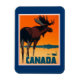 Illustration de la publicité touristique et touristique vintage pour le Canada. Il propose une scène extérieure avec un orignal. J'ai ajouté des bordures de conception graphique réfléchies et colorées.