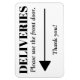 Cet aimant flexible pratique a un arrière - plan blanc qui peut se fixer et se mélanger avec une porte en métal blanc. Le texte noir personnalisable dit, "LIVRAISONS - S'il vous plaît nous la porte d'entrée" avec une flèche vers la gauche en noir avec les mots "Merci !" ci-dessous. Vous pouvez modifier la direction de flèche en utilisant l'outil "Modifier à l'aide de l'outil de conception" pour vous emmener à la section calques où vous pouvez ensuite déplacer la flèche vers le côté opposé et la faire pivoter.