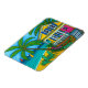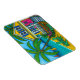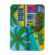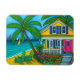Ein Gemälde von Lisa Lorenz von einer lebhaften, glücklichen tropischen Szene eines bunten, gemütlichen Strandhauses an einem türkisfarbenen Strand. Jetzt verfügbar auf einem Magneten.