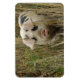 Ce merveilleux aimant présente une belle photo d'un mignon cochon rose émergeant d'une grande herbe.