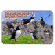 Magnifique 4" x 6" Puffin Scripture Magnet d'une scène colorée et détaillée où un mignon adulte Puffin avec des ailes étalées, à gauche, montre à sa progéniture attentive comment voler. Une autre leçon est enseignée par un adulte de Puffin à l'arrière - plan d'une jeune progéniture de Puffin. À droite se trouve une jeune progéniture de Puffin qui fait face au public en défiant les instructions du parent tout en s'équilibrant sur un rocher. Cette scène accompagne le verset de la Bible Proverbes 22:6, "Entraînez un enfant comme il devrait aller et quand il sera vieux, il ne s'en éloignera pas." Cet aimant fait un merveilleux don ou peut être utilisé pour nous rappeler la Parole de Dieu.