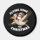Flying Zuhause für Christmas Magnet. In einer skurrilen Weihnachtsgeschichte spielt ein Pelikan den Weihnachtsmann, indem er eine Katze und festliche Geschenke durch den schneebedeckten Himmel herbeiträgt, um Beifall zu spenden.
