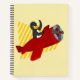 Notebook mit Design mit Illustration eines Pinguins mit rotem Flugzeug; illustriert von Radka Kavalcova / MaxiHarmony
