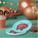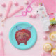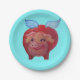 niedliches fettes Fliegenrosaschwein mit kleinen blauen Flügeln stellt eine große Papierplatte her, falls Schweine fliegen können.