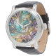 Uhr, Vintage Männeruhr mit schwarzem Lederarmband
