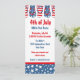 Niedliche patriotische Flip Flops in roten und weißen Streifen und blauen und weißen Sternen. Blauer Sternenhimmel mit rotem Streifen. Freuen Sie sich auf die patriotische Einladung zum 4. Juli Barbecues, Gedenktag oder jederzeit. Anpassbarer Text. PinkInkArt Original!