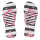 Flip Flops mit einem rosa Flamingo gestreift Design. Erhältlich in Größen für Frauen, Männer und Kinder.