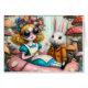 Die Fantasy-Collage Alice und das weiße Kaninchen auf einem Floattrip durch einen Fluss mit Pilzen wachsen auf den Ufern