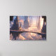 A futuristic city with towering skyscrapers floats above a sea of clouds. Bridges connecting the buildings add an ethereal quality to the scene.