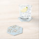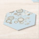 Ein Retro-Mod-Untersetzer mit grauen und weißen Kreisen auf hellblauem Hintergrund.