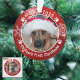 Créez un ornement photo personnalisé pour un chiot ou un chien avec ce ornement acrylique rond rouge et blanc festif comprenant 2 photos (une de chaque côté), des empreintes de chien et des flocons de neige avec votre texte personnalisé (l'exemple montre le premier Noël du nom). La conception est dupliquée sur les deux côtés avec les mêmes photos ou différentes. OPTIONS : Le design peut être transféré à d'autres styles ornementaux (tous ne peuvent pas offrir l'impression recto verso). ASSISTANCE : Pour obtenir de l'aide sur la modification du design, la personnalisation, le changement de couleur ou le transfert du design vers un autre produit, contactez le concepteur AVANT DE COMMANDER via l'onglet MESSAGE Conversation Zazzle ci-dessous ou envoyez un courriel à makeitaboutyoustore@gmail.com.