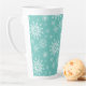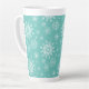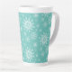 Cette grande tasse en latte est présentée avec une impression festive de flocons de neige de Noël. Couleur Turquoise Customiser cet article ou acheter tel quel.