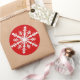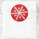 Autocollant rond avec l'image d'un flocon de neige blanc sur rouge. Voir carte de voeux, étiquette, confettis et papier d'emballage correspondants. Voir la collection entière de Sticker de Noël sous la catégorie CARDS & STICKERS dans la section VACANCES.