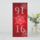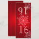 Conception de flocon de neige rouge numéro de table DIY. Changez le numéro pour chaque table et commandez individuellement pour que les numéros de table soient coordonnés avec les invitations de correspondance. Pliez en deux pour obtenir une carte de numéro de table de 4" x 4 5/8".