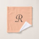 Cet ensemble unique et personnalisé de serviette de bain, serviette de toilette et gant de toilette est orné d'un fond Floque de pêche et d'un monogramme élégant. C'est un design moderne, contemporain et minimaliste tendance. Il est facile à personnaliser, il suffit de changer ou de supprimer le monogramme exemple. Vous pouvez acheter l'ensemble ou des articles individuels. Tous droits réservés © 2023 Alan & Marcia Socolik.