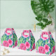 Blütenfarbene Aquarellmalerei mit rosa Blume und grünen Blätter auf blauem Hintergrund. Ein frisches Design und eine Anzeige zu Ihrer Blumensammlung.