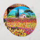 Toskana-Landschaft, lebhafte, ausdrucksvolle Schönheit der italienischen Landschaft und farbenfrohe Blume in hellgelben Orangen, Rosa, Fuchsien, lila, rot, grün, schwarz, schön Sommerwiesen, Zypressen und Olivenbäume, rustikales altes Bauernhaus unter dem blauen Himmel.Akrylmalerei auf Leinwand.