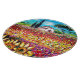 Toskana Landschaft, farbenfrohe, lebendige, ausdrucksvolle Schönheit der italienischen Landschaft und Felder in hellgelben Orange, Rosa, Fuchsia, lila, rot, grün, braun, gelb, wunderschöne Sommerflora, Wiesen, Blume, Zypressen und Olivenbäume, rustikales altes Bauernhaus unter dem blauen Himmel.Akryllische Gemälde auf der Leinwand.
