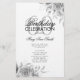 Elegantes "Geburtstagspartprogramm" mit floraler Anordnung in Silber mit individuellem Text.