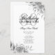 Elegantes "Geburtstagspartprogramm" mit floraler Anordnung in Silber mit individuellem Text.