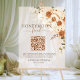 Collectez les contributions de lune de miel dans le style avec cet élégant panneau acrylique floral rustique. Doté de fleurs d'aquarelle dans les tons terre cuite et ivoire, ce panneau de fonds Lune de miel de code QR allie confort moderne et charme rustique intemporel. Parfait pour afficher sur votre table cadeau ou de bienvenue, le design acrylique transparent ajoute une touche chic, durable et durable à votre décor mariage. Les clients peuvent simplement scanner le code pour partager leur amour et leur soutien pour votre lune de miel de rêve.